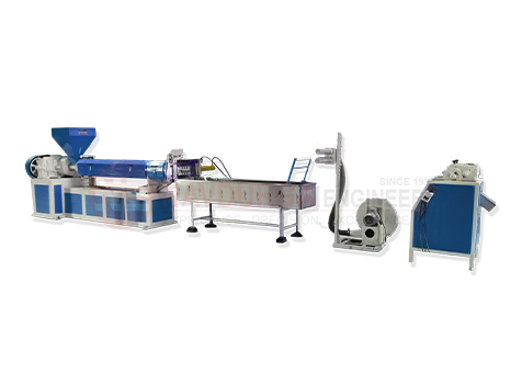Plastics granules making machine which works on a principal of plastic extrusion process, is a normally high volume manufacturing process where a polymer material, enriched with the desired additives, is melted and formed in a continuous process. Where output can get form of granules, tubes, sheets, lumps and etc.