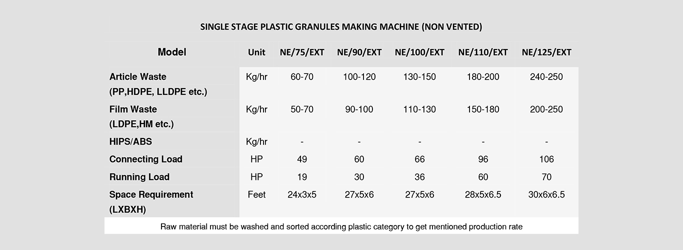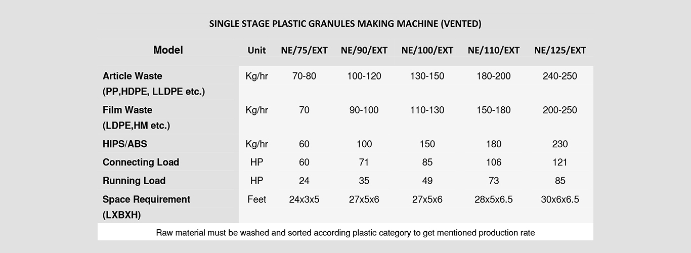 various models available which are classified according their production rate. 65 mm to 125 mm screw size extruder models available.